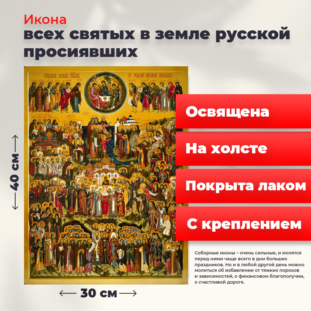 - Освященная икона на холсте "Всех Святых в земле Русской Просиявших"
